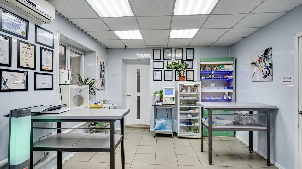 Среди наших услуг анализ крови, анализы на панлейкопению, пироплазмоз, токсоплазмоз, УЗИ, ЭКГ, рентген, анестезия, вакцинация кошек, собак и кроликов, вакцинация против бешенства, взвешивание животных, дегельминтизация кошек и собак, кастрация, проведение кесарева сечения, купирование ушей и хвоста, обработка от блох, прием родов у животных, стерилизация, удаление зубного камня, удаление зубов, извлечение клещей, уколы, чистка зубов, чипирование кошек и собак, услуги груминга (в том числе маникюр, купание, подстригание когтей, стрижка и чистка ушей), передержка кошек, эвтаназия и кремация животных, приём ветеринарного дерматолога, кардиолога, ортопеда, офтальмолога, стоматолога, терапевта, хирурга, гинеколога и диагноста, оформление ветпаспорта, консультация орнитолога, диспансеризация животных, стационар для животных, лечение грызунов, морских свинок и экзотических животных, помощь в выборе питомца.