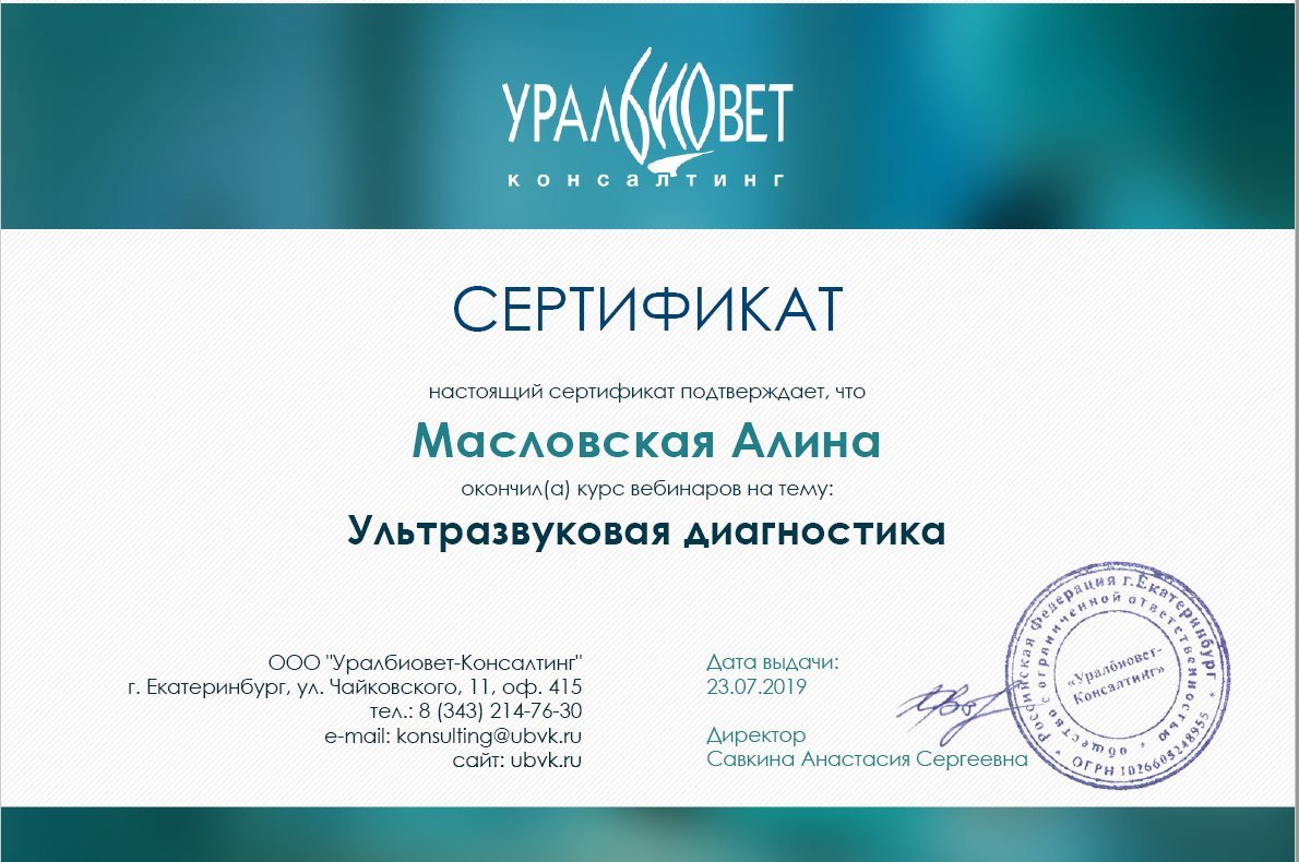 Был на приеме у доктора УЗИ Алины Александровны Масловской. Вообще, регулярно сюда обращаемся со своим питомцем. Мне понравилось, что на услугу всегда можно легко записаться на прием. В работе врач профессиональный, проявил хорошее отношение к животному. В ходе процедуры на почту скинули выписку с расшифровкой и на словах все объяснили. Клинику выбрала в интернете. На ресепшене встречают вежливо, не грубят, не хамят. Прием всегда своевременный.